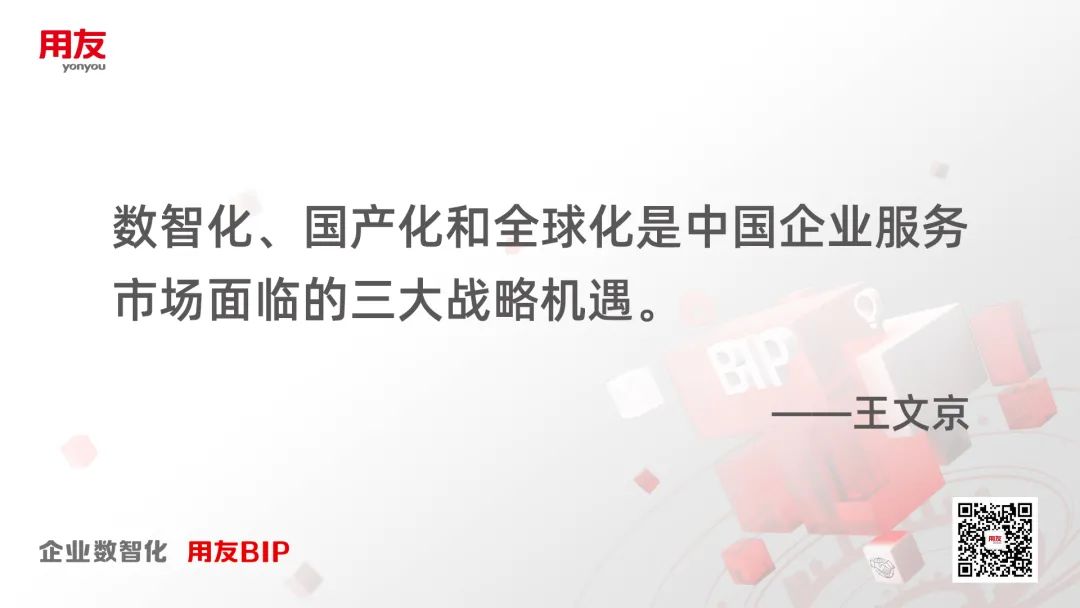 王文京認為,數智化、國產化和全球化是中國企業(yè)服務市場面臨的三大戰(zhàn)略機遇,也是中國企業(yè)服務廠商合作共贏的重要抓手。